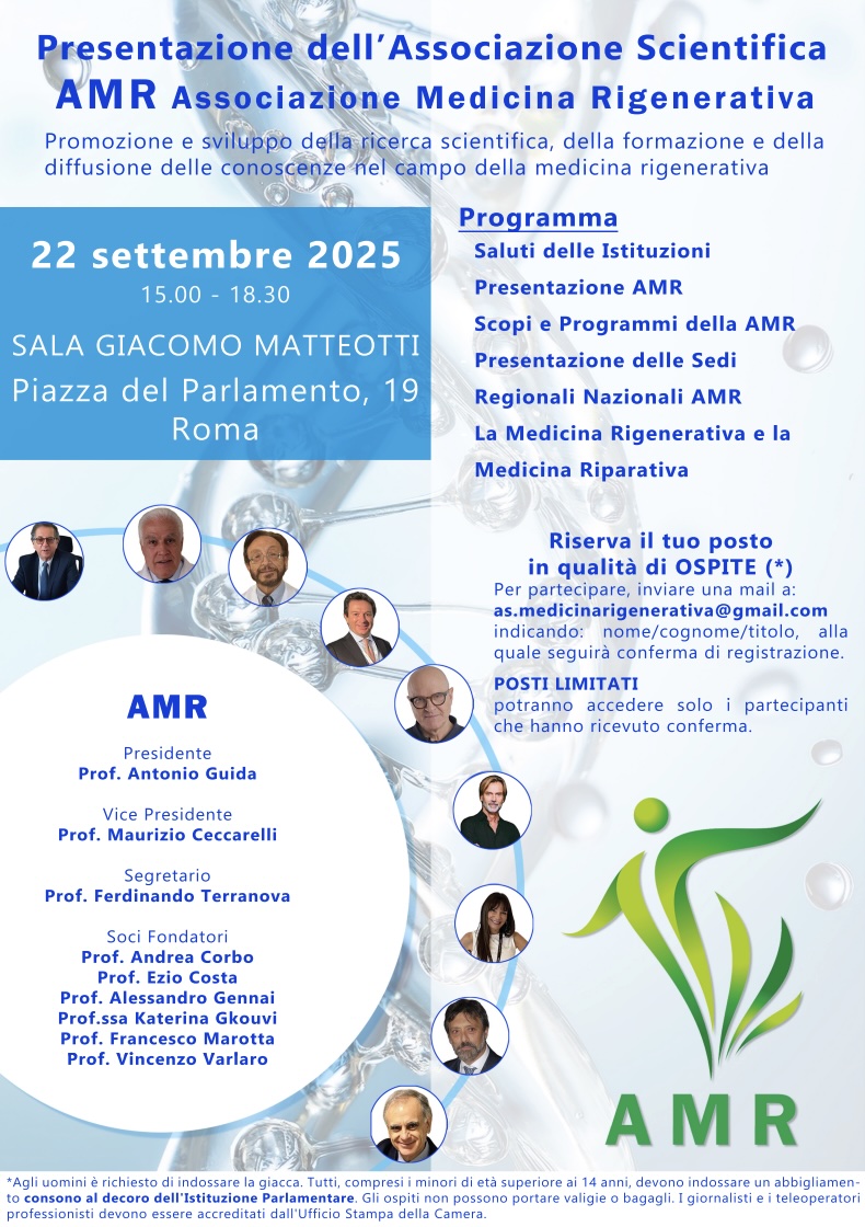 Presentazione dell’Associazione Scientifica AMR Association of Regenerative Medicine presso il parlamento Italiano, 22 settembre 2025