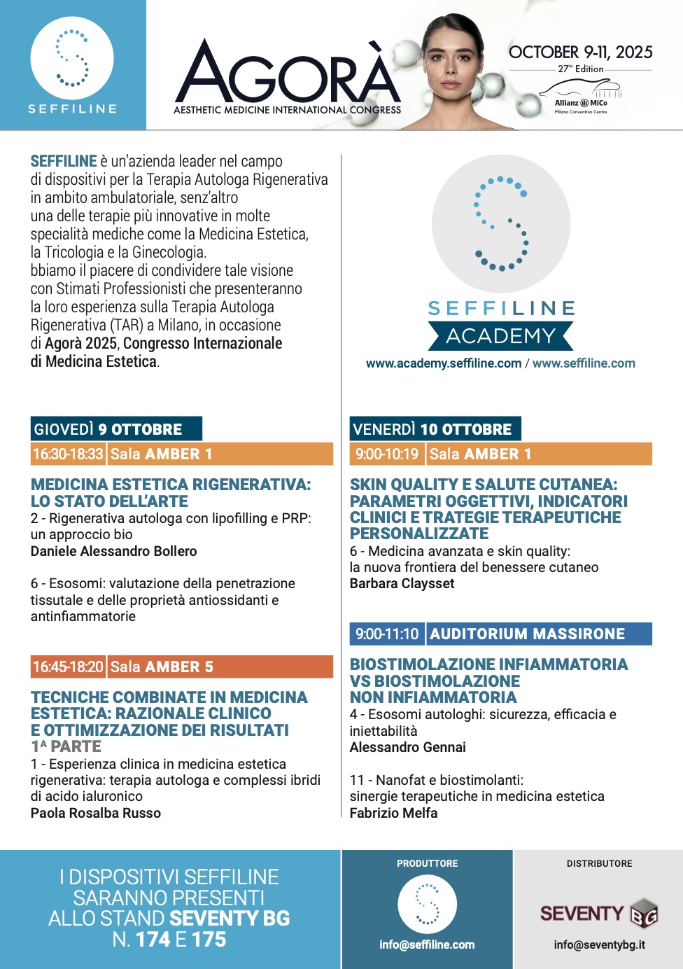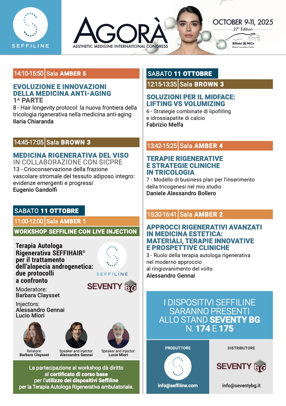 SEFFILINE al congresso Agorà, Milano 9-11 Ottobre 2025, anche quest’anno con un WORKSHOP LIVE con il nuovo protocollo SEFFIHAIR!